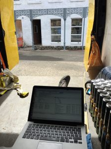 The whole system was controlled by a Raspberry Pi, using a 4G router as its gateway to the Twitter API. For power and bandwidth efficiency, all of the audio was cached locally within the guitar. The picture opposite is me in the back of a Transit van with the guitar, configuring the Raspberry Pi for the first time.