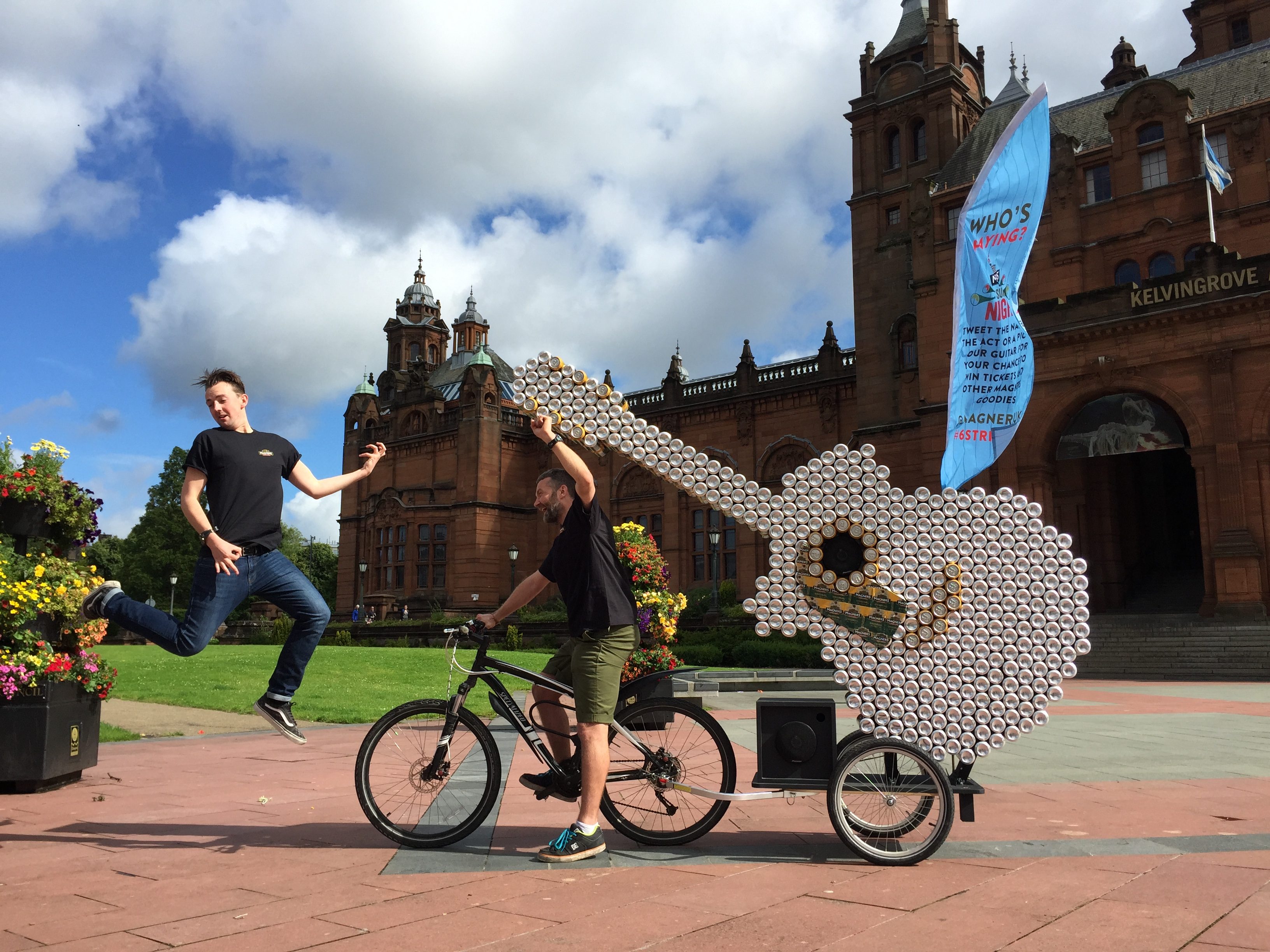 The initial brief was pretty wide open, and the idea we settled upon was to create a large acoustic guitar sculpture out of Magners cans. Working with a local sculptor, we sketched out a wheeled machine made from over 800 cans that could be towed behind a bicycle to promote the festival.